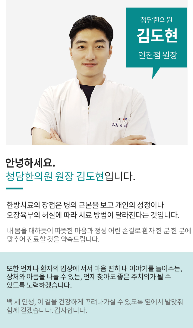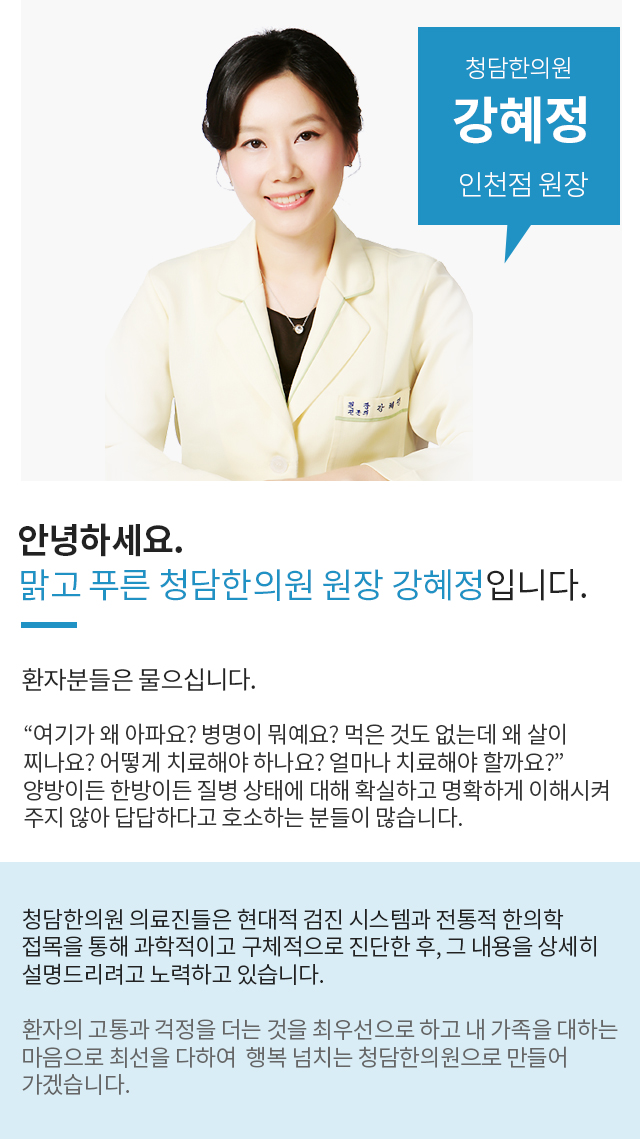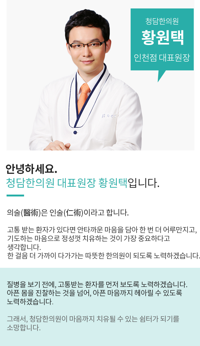 항상 노력하는 자세로 환자를 대한청담한의원 인천점입니다.