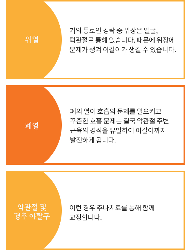 치아와 턱뼈의 건강을 위해서 치료가 필요합니다.