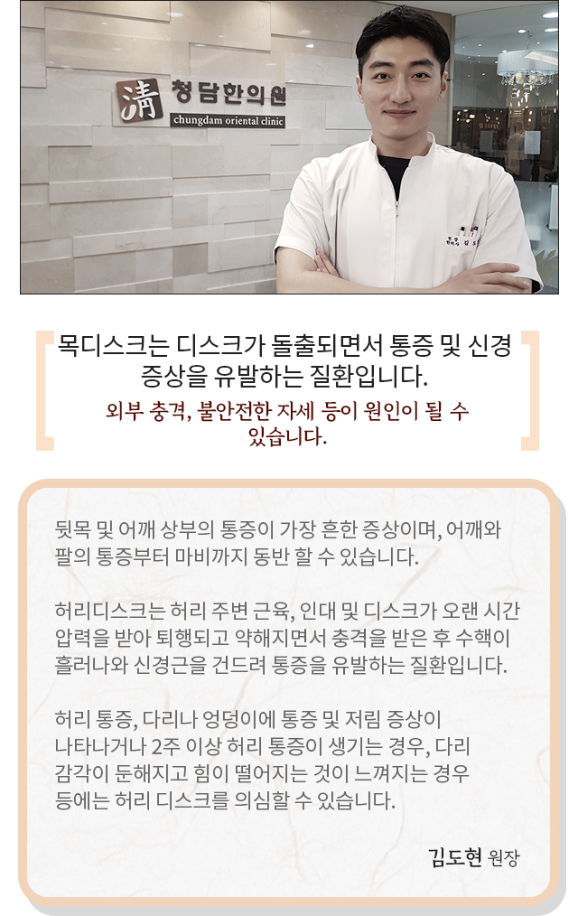 통증클리닉 > 통증치료법 통증클리닉 > 목/허리디스크 통증클리닉 > 거북목증후군 통증클리닉 > 손목터널증후군 통증클리닉 > 테니스엘보 통증클리닉 > 척추질환 통증클리닉 > 신경통 통증클리닉 > 오십견 통증클리닉 > 청담한의원 소개