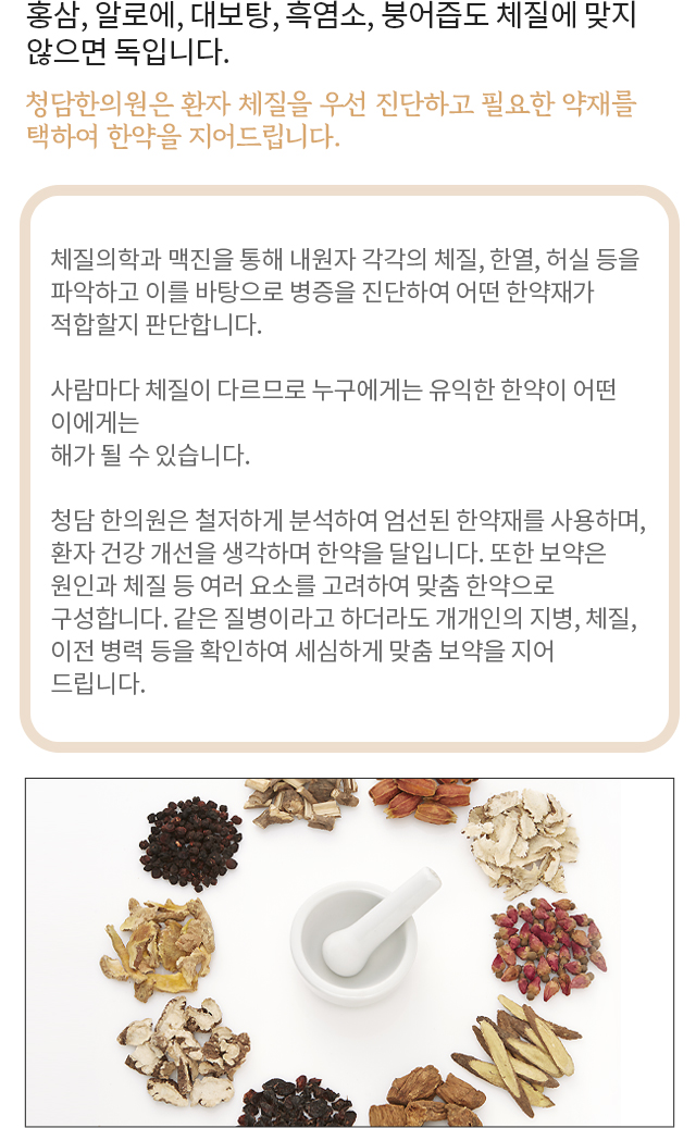 세밀한 진단을 통하여 몸의 부족한 요소를청담한의원이 채워드립니다.
