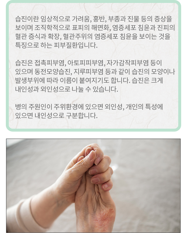 피부와 함께 몸 전체를 보아야 바로 치료가 됩니다.